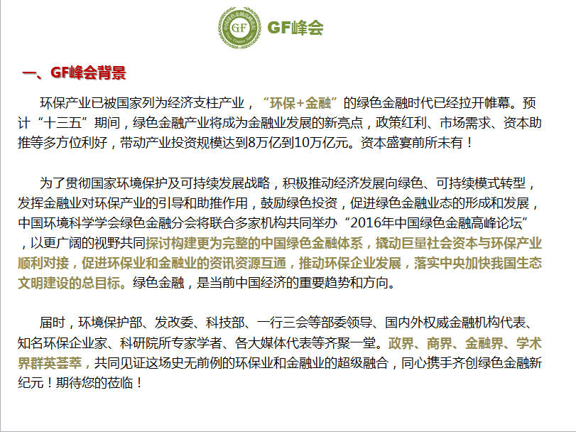 2016年第二届中国绿色金融高峰论坛