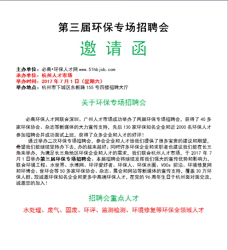 第三届环保专场招聘会邀请函