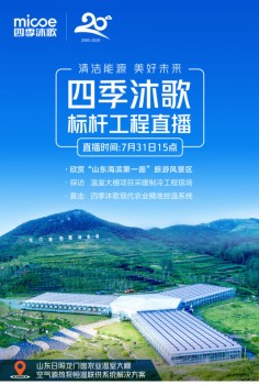 7月31日,四季沐歌标杆工程直播活动就将带领观众走进山东日照市龙门崮风景区,为观众呈上四季沐歌龙门崮风景区温室大棚空气源热泵采暖制冷项目精彩直播,交上以上问题的答案。