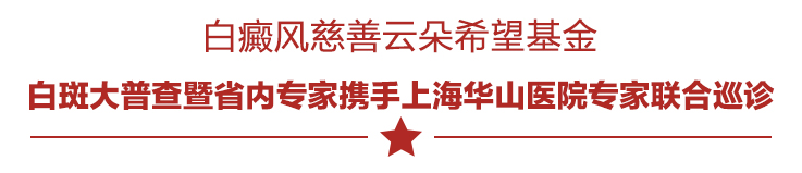 浙江省白癜风专项救助基金“云朵希望基金”特邀上海华山医院黄岚副教授、魏明辉副教授、方丽华副教授、黄岚副教授、浙江大学附属第一医院许冰教授共同开展夏季白斑大普查暨省内专家携手上海华山医院专家惠民面诊活动。同时多家爱心企业将参与对贫困白癜风患者的帮扶资助。