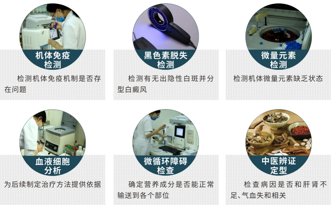 白癜风发病原因多与机体“内环境”失调有关,白斑6项黄金检测,针对机体进行细致化、全面检验,对机体内环境进行全面排查,诊断白癜风的同时能明确发病原因。
