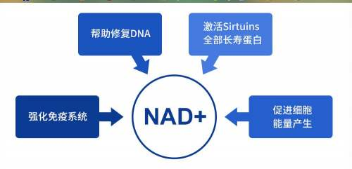 NMN功效诸多,除了抗衰老和延长寿命以外, NMN还具有预防神经退行性疾病(如老年痴呆);提高胰岛素的敏感性,改善2级糖尿病;增加造血干细胞的活性和线粒体的功能;维持端粒的长度,可用以治疗纤维化疾病 ;增加骨密度 ,增强耐力,改善运动协调能力;提高眼睛功能;解酒护肝等诸多功效。