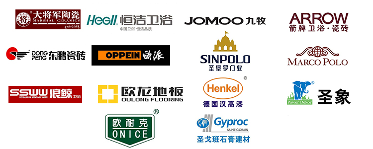 瓷砖类:马可波罗、东鹏、冠珠、蒙娜丽莎、汇亚、新中源、兴辉
