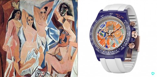 AET REMOULD先将迪通拿改造为陶瓷材质后,再在表盘设计中融入毕加索画作,两个不同行业的经典相结合,绝对值得让人期待。我整理出了AET REMOULD已经公布的几款毕加索x劳力士腕表与大家欣赏。