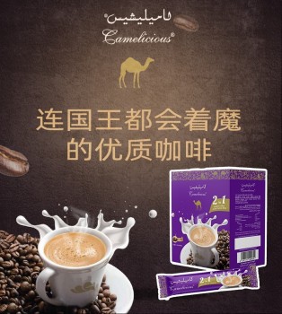 值得一提的是,由于现在很多的中青年人群都有熬夜加班的习惯,此时饮用Camelicious 驼奶咖啡除了可以提神,还能给身体补充丰富的营养,促进身体健康。Camelicious驼奶的营养成分非常高,它里面不但富含优质蛋白,维生素A和B的含量也非常丰富,可以很好地改善身体营养结构,提升身体的免疫力。正是凭借着如此众多的优势,Camelicious 驼奶咖啡日渐走俏,成为了咖啡饮品市场的新力量!