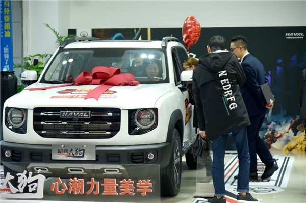不是我冲动,而是哈弗大狗带给我的感觉,真的很契合。路过4S店看到了白色的哈弗大狗,大气稳重,跟它旁边的车对比,大了一圈,而且车型设计方方正正的,显得很霸气,圆形大灯时尚又精致,绝对是一排车中最亮眼的那一款,于是我鬼使神差就去试驾了,进到店里,不少人都在看大狗,感觉很受欢迎。