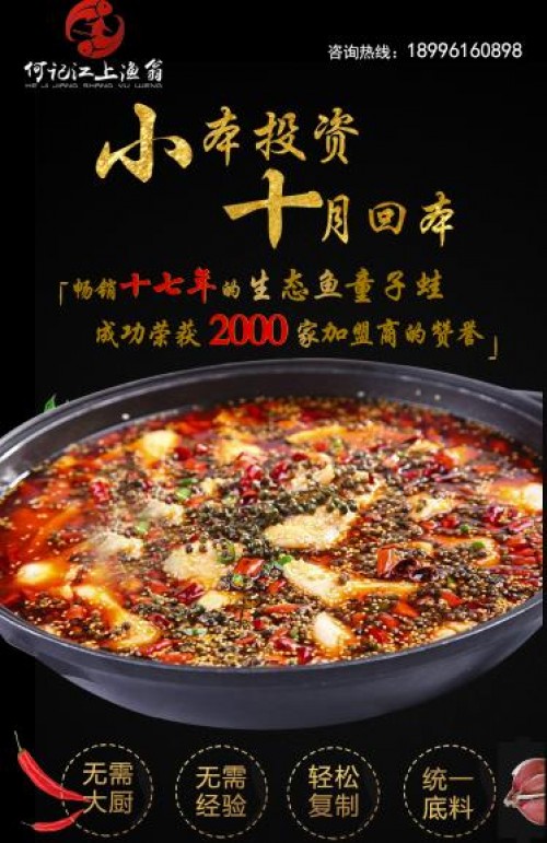 开餐饮店的创业者都有这样的一个疑问,究竟在开店时什么最主要?其实对于餐饮店来说,虽然经营方法和个人经验也很重要,但是最关键的就是口味的好坏,试想一下一家店面装饰再华丽,如果菜品的口味不佳也是无法留住顾客的。而何记江上渔翁在菜品口味上能够给消费者留下深刻的印象,因为店面所提供的菜品种类丰富,主打的美蛙鱼头火锅不仅可以一锅两吃,秘制口味也让消费者吃过一次还想第二次,因此选择加盟何记江上渔翁品牌就意味着有了品牌保障,在开店之后可以更加轻松的获取一本万利。