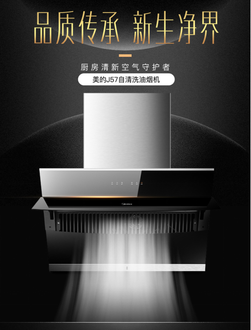 针对消费者普遍存在的这一痛点,美的深入洞察消费者需求,不断创新吸油烟机技术,全新推出了美的J57自清洗油烟机,在保证大吸力的前提下,还为用户带来了“高压直喷洗”、“自动开合拢烟”等厨房黑技术,大大提升使用体验。
