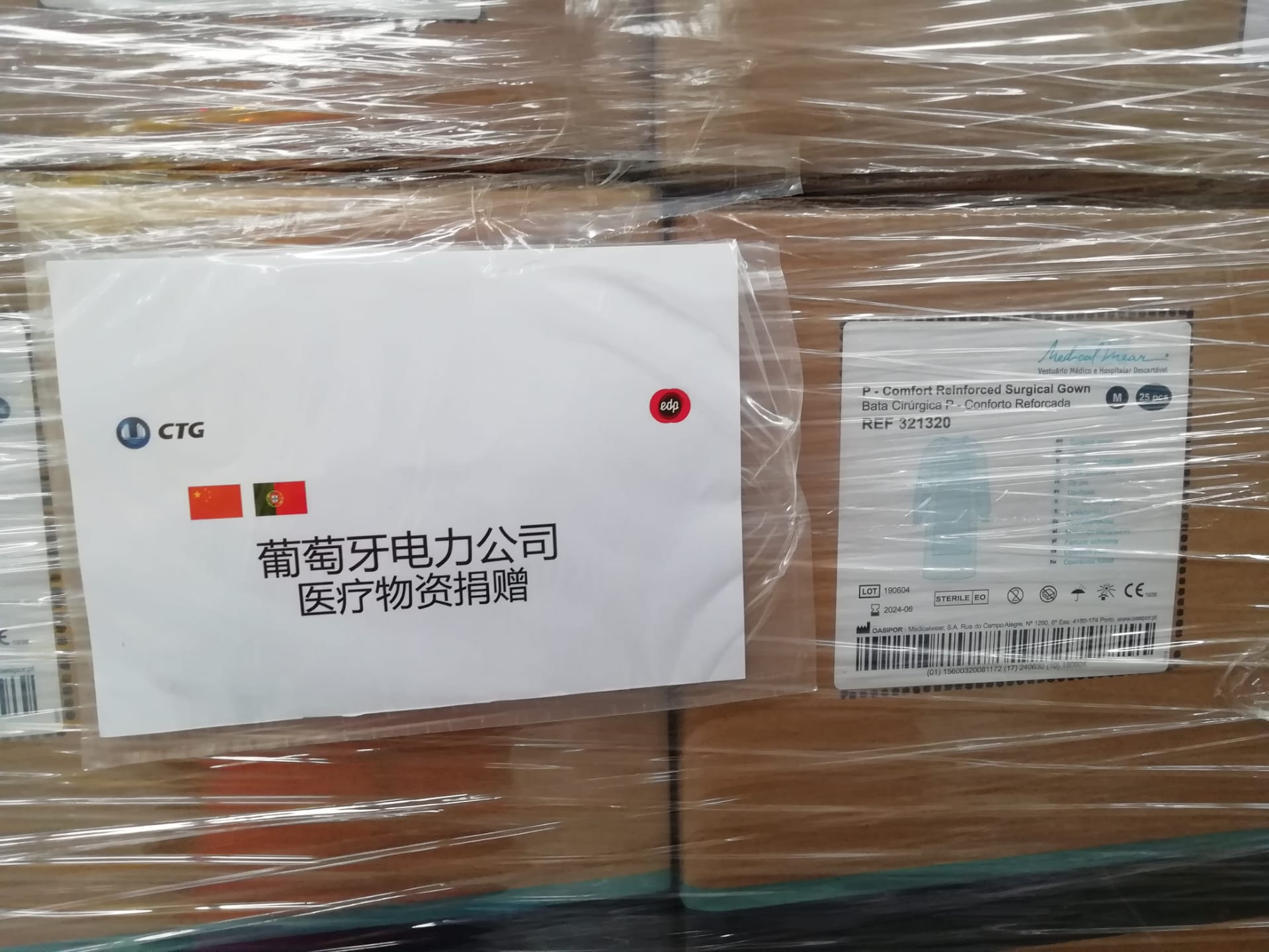 澎湃新闻了解到,这批包括了4.5万个医用口罩、420件医用防护服、1.5万个手术服、4万医用帽以及10万双医用鞋套在内的医疗物资,是葡萄牙最大的能源企业——葡萄牙电力公司(下称葡电)在欧洲医疗物资紧缺的情况下,在葡萄牙本国,及西班牙和巴西等地“海淘”筹集而来。运抵中国后,由中国最大的清洁能源集团三峡集团接棒完成后续的物资运输保障、定向捐赠等工作。