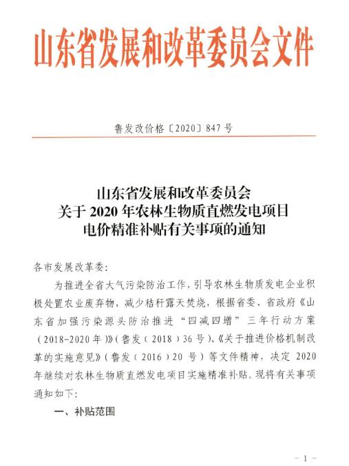 山东省将下发生物质直燃发电电价精准补贴!
