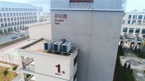 比如在学校热水方面,为了保证校内有高品质的热水供应,给师生们提供一个舒适安全的热水环境,同时也是为了响应国家绿色环保的号召,校方在2019年时,放弃了原来的热水设备,改用纽恩泰空气能热泵为学校提供热水。