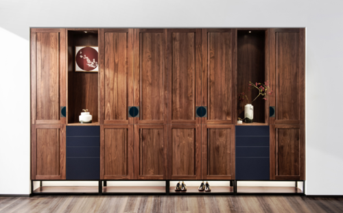 从还原东方美学生活的设计理念开始,到构建出不同空间所对应的现代生活解决方案,中隐都像是一个智者,传递出的是低调内敛又富有内涵的经典和大气。主体设计打破传统定制门板单一呆板的印象,在采用传统形制的基础上,增添了很多具有现代时尚感的元素,比如有雨灰色、靛蓝色和雾色三色可选的MDP(进口全松板)超哑烤漆门板,以及两款寓意圆满的金属装饰,让整个产品所表达的意境立刻深邃起来,考究的细节尽显简约大气,传递出意会东方的设计内涵。不仅如此,门板基材采用 MDP(进口全松板)环保级别达到了美国CARB-P2环保认证,此标准是复合木制品环保较严格的标准之一,柜体表面采用柏厨定制钢板设计,柜体基材甲醛释放量不高于0.3mg/L,可达F4星环保标准,健康的保障让美好时光更加隽永;跨越古今的美丽传承,让鎏金岁月一生难忘。
