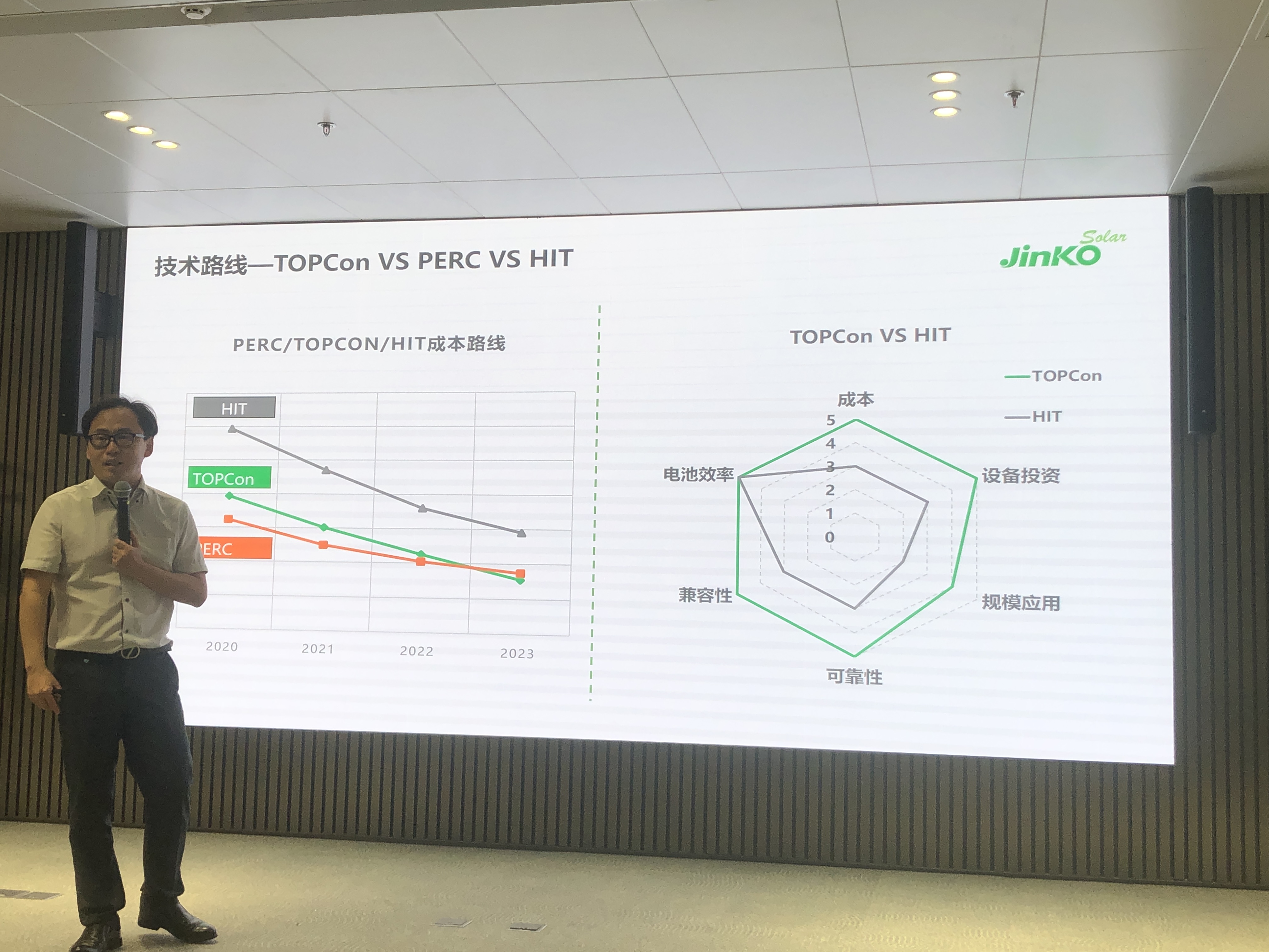 “下一代技术是异质结还是TOPCon?”这已成为光伏行业会议上必谈的热门话题。在今年的SNEC展会上,也有越来越多厂商展出N型产品,主要聚焦在TOPCon和异质结两种技术路线。  金浩认为,到明年或后年,TOPCon电池的成本会低于PERC电池的成本,“而异质结不管在投资上或是供电成本上,都还需要非常长时间去接近PERC。”
