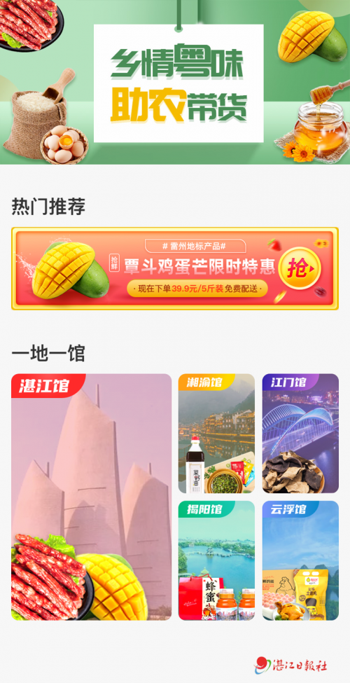 今年,广东南粤银行全面启动服务乡村振兴战略,计划通过网点布局、人才队伍、产品体系、考核体系、科技体系为基础,为农村现代化、产业现代化、农村综合改革、乡村优秀传统文化传承等提供全面的金融服务。记者了解到,通过该行大力推广其线上渠道——“小粤惠”商城,为区域性农产品打开销路、广开门路,助力乡村振兴、推广当地特色农产品。