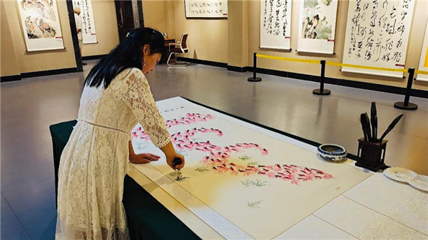 王玲玲,濮阳市龙都书画艺术院专职美术师,濮阳县刀书画艺术院副院长,第六代王氏刀书画传承人,被艺术界誉为“刀画女郎”、“中国刀画王”。2019年为庆祝中华人民共和国成立70周年,她以刀代笔成功创作了长2019厘米、宽70厘米的《魅力中国》刀画长卷。被海内外百余家媒体竞相报道,极大的提升了濮阳知名度,弘扬了龙乡民间艺术。(施若锦 王东方)