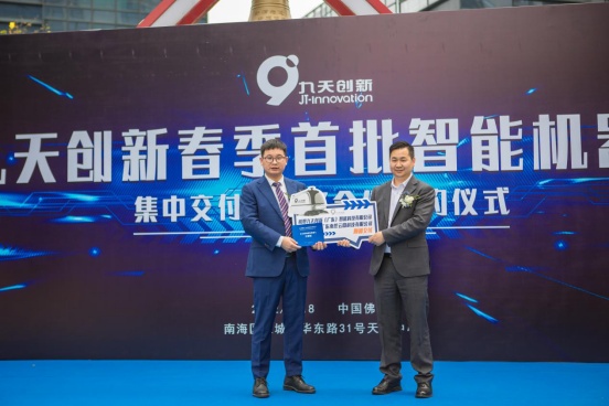 九天创新(广东)智能科技有限公司是一家年轻而又充满活力且潜力无限的高科技公司,专注万平米级场景应用的智慧清洁机器人产业化。核心团队是连续创业者,产业化及管理运营经验丰富,技术骨干主要来自南洋理工、中科大、清华、哈工大等一流高校,拥有近二十年智能移动机器人领域的科研沉淀。围绕智慧清洁千亿市场空间深度布局,目前已有多个大型企业集团数十个应用场景,行业标杆客户订单预计两年达到近千台。通过此次规模化量产庆典,九天创新将进一步深耕智慧清洁机器人产业化领域,积极与各行业企业推广合作,努力为中国制造业重镇佛山,为粤港澳大湾区,建设机器人创新应用新高地。