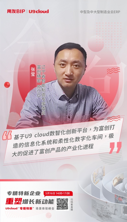 服务企业数智化转型和商业创新,用友一直是行业领导厂商。用友公司高级副总裁徐洋说:“近两年,我们已经帮助了很多专精特新企业打造新的数智化平台。助力专精特新企业规模扩张和快速成长。另外,针对专精特新企业,特别是在IPO的内控合规方面,可以帮助企业更加省事省心。U9 cloud可为企业提供内控管理的良好的支撑。”