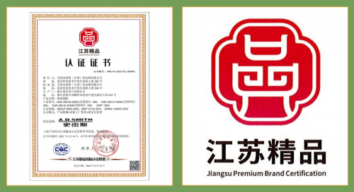 江苏精品”是江苏省委、省政府大力实施品牌发展战略、建设质量强省的一项重要举措。获得“江苏精品”认定的产品为具有国际先进(国内领先)水平,创新能力强、品质卓越、 品牌效应好、经济和社会效益显著的自主品牌产品。由江苏省委、省政府牵头组织依据国际通行认证标准和流程严格评选,是高品质、高水平的代名词,含金量极高。A. O.史密斯「瀞」油烟机荣获“江苏精品”认证既是对产品质量的肯定,也是对A.O.史密斯创新与研发实力的认可。