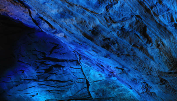 走了大概十分钟,洞窟深处似乎宽阔了些。忽然,头灯闪烁几下,灭了。