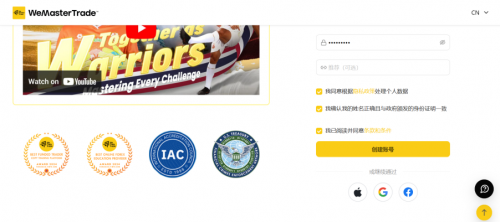 1.进入 WeMasterTrade 官方网站(https://wemastertrade.com/zh/),点击右上角 “登陆” 按钮;
