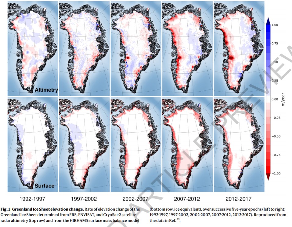 Shepherd等人表示,格陵兰岛储存的冰足以使全球海平面上升6米,了解格陵兰岛的冰川融化情况对理解气候变化至关重要。“即使是少量的冰川融化也会破坏沿海城市”。“据估计,到21世纪末,每年将有3.6亿人遭遇沿海洪水灾害”。