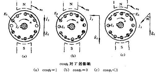 三相异步电动机的转矩是由旋转磁场的每极磁通Φ与转子电流I2相互作用而生成的。它与Φ和I2 的乘积成正比,此外,它还与转子电路的功率因素cosφ2 有关。